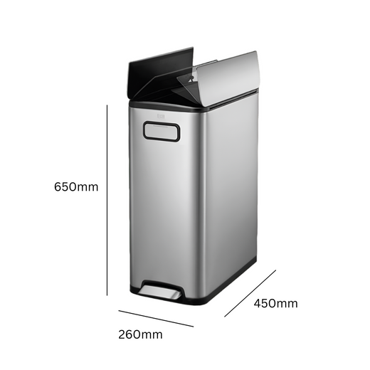 The Ecofly is a perfect choice for kitchens that have limited space, with its compact design this bin can easily be placed up against kitchen islands with easy or placed under countertops. Featuring a butterfly opening for waste disposal to aid with compact spaces the Ecofly contains convenient wheels and and pull handle to easily relocate the bin.